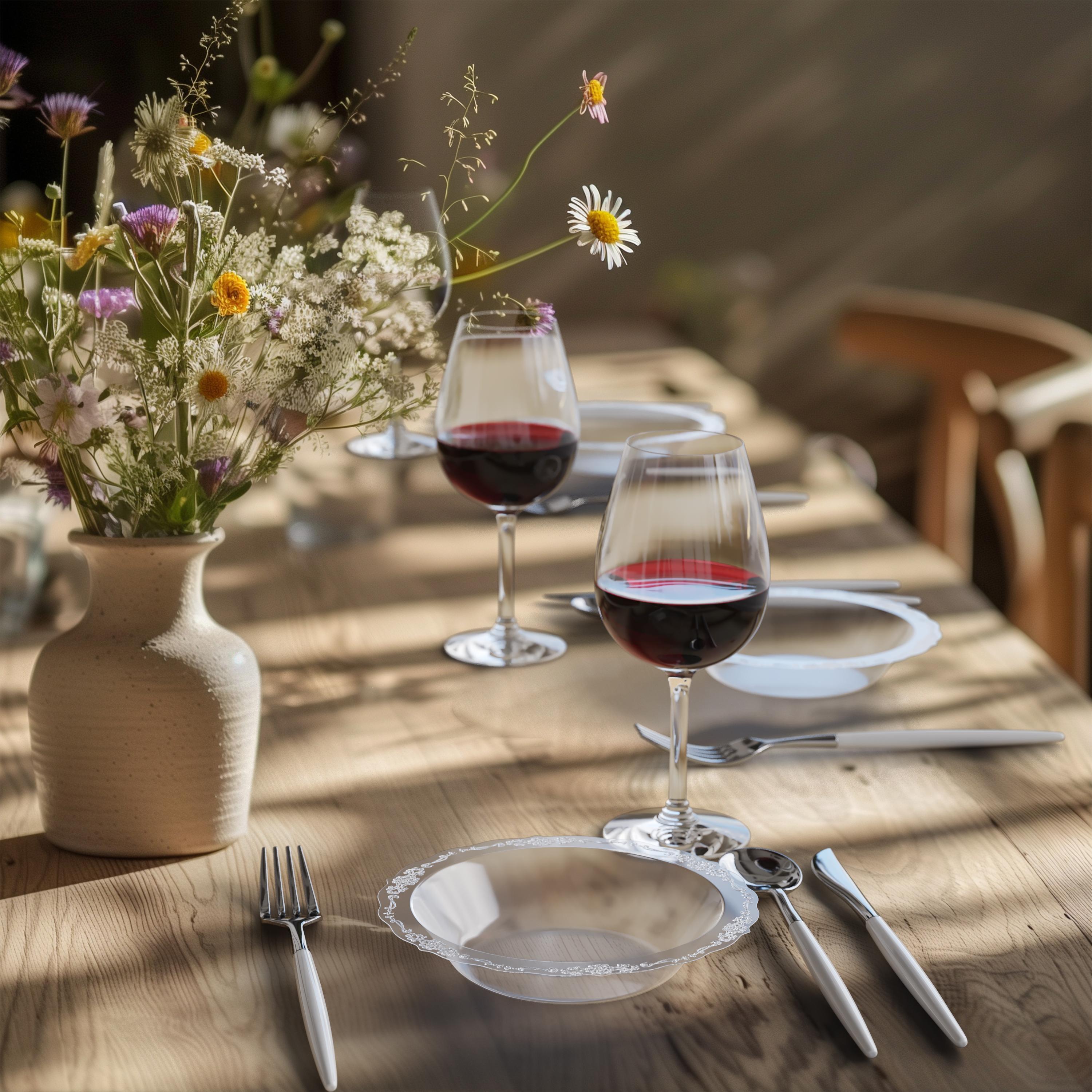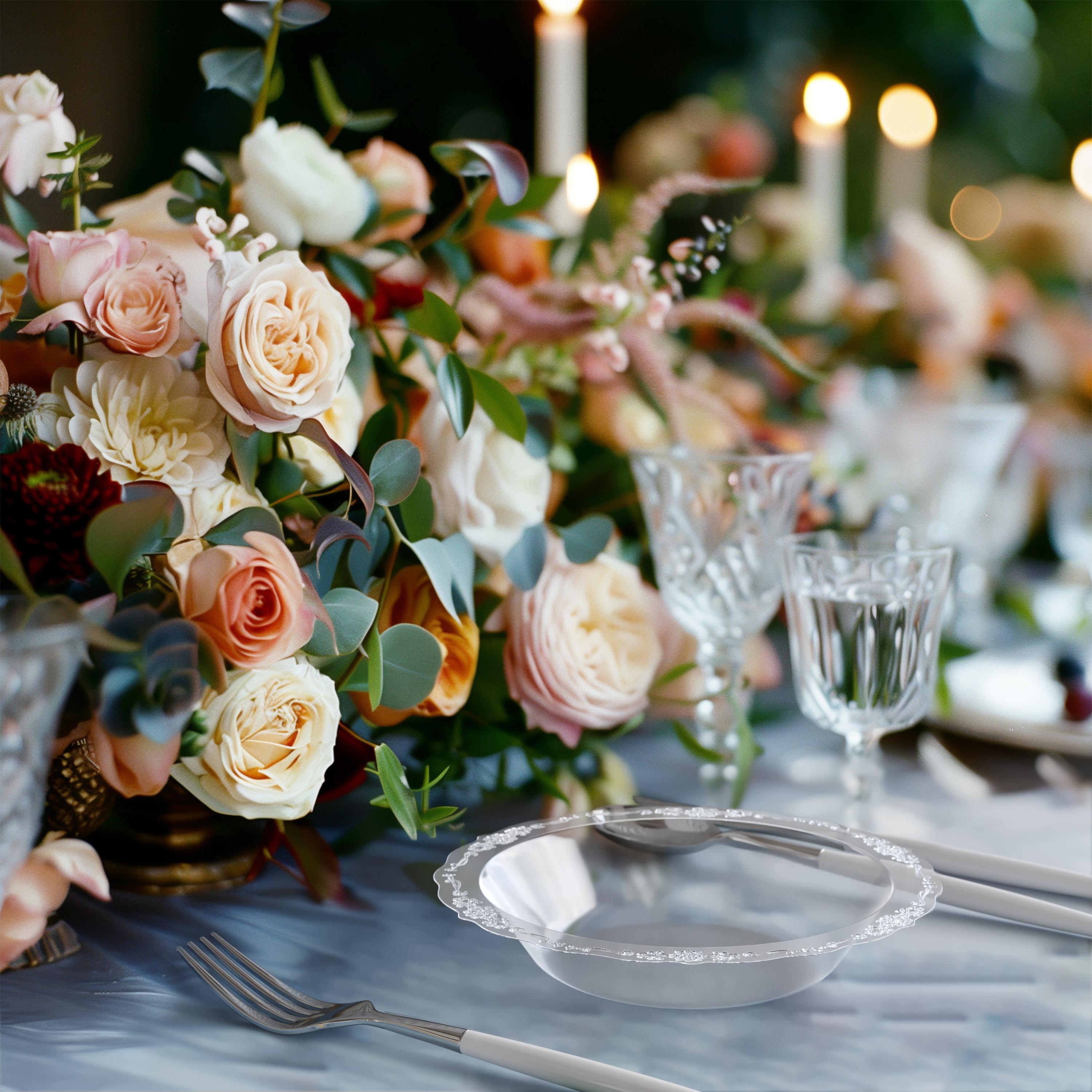 The Victorian Collection - A Blend Of 19Th Century Elegance With Modern Convenience And Simplicity. A Sleek Clear Set With Shining Metallic Gold Classical Motifs. A Suitable Choice For Anniversaries, Weddings, Or Dinner Nights Where You Would Want To Exude Opulence And Style At Your Table. Each Plate Combines The Convenience Of A Disposable Plate With The Stunning Appearance Of Real China. With Factory Direct Party Victorian Dinnerware Sets It Is Now Possible To Setup The Most Elegant Table In No Time!