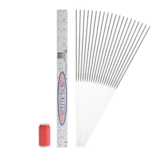 1 Package of 6 extra long 36in. Gold Wedding Sparklers. Each sparkler has a burn area of 20", large wand and lasts approximately 3 minutes. This beautiful gold sparkler is great for weddings, anniversaries and birthday parties. Fireworks should always be used under adult supervision. For indoor and outdoor use.