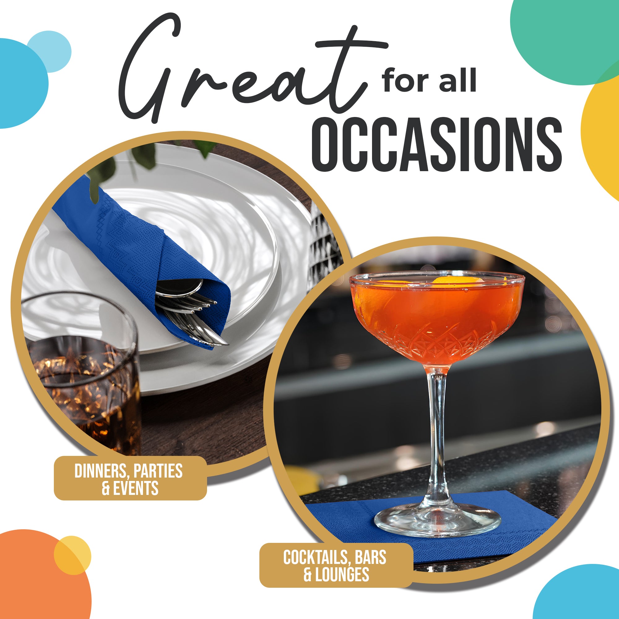 Dark blue beverage napkins bring sophistication to any gathering while keeping drinks and hands perfectly dry. This 100-count pack offers exceptional value for parties, weddings, corporate events, or everyday entertaining. The rich, versatile color complements virtually any décor theme, from casual backyard barbecues to elegant formal occasions. Durable and absorbent, these napkins handle condensation and spills with ease, ensuring your guests stay comfortable throughout the event. Stock up and enjoy the convenience of having premium napkins ready whenever you need them.