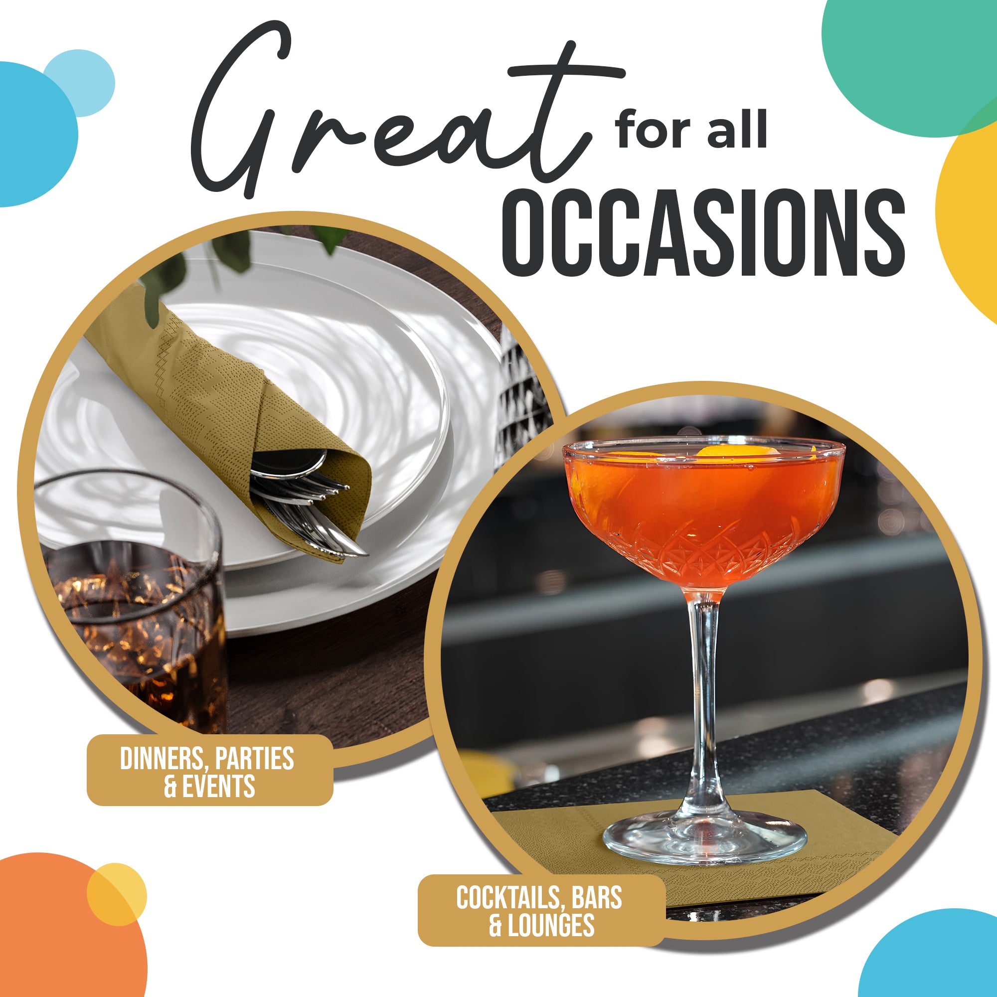 Elevate your gatherings with our Gold Beverage Napkins, the perfect finishing touch for any celebration. This 100-count pack delivers sophisticated style and practical functionality for cocktails, mocktails, and refreshments. The rich gold hue complements any party theme, from elegant soirées to casual get-togethers. Durable and absorbent, these napkins keep hands clean while adding a touch of glamour to your table setting. Stock up for weddings, holiday parties, corporate events, or everyday entertaining. Make every sip memorable with napkins that blend elegance and reliability.