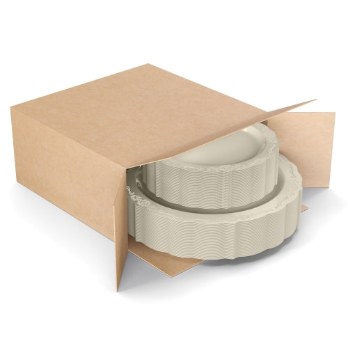 The set includes 7.5" and 10" Victorian design plates which can hold all the protein, veggies, and carbohydrates in one. Our premier quality disposable plates will surely complement your table with their exquisite design. Instantly set up an incredibly chic and simple table, saving both time and effort. With Factory Direct Party Victorian dinnerware sets, it is now possible to set up the most elegant table in no time!