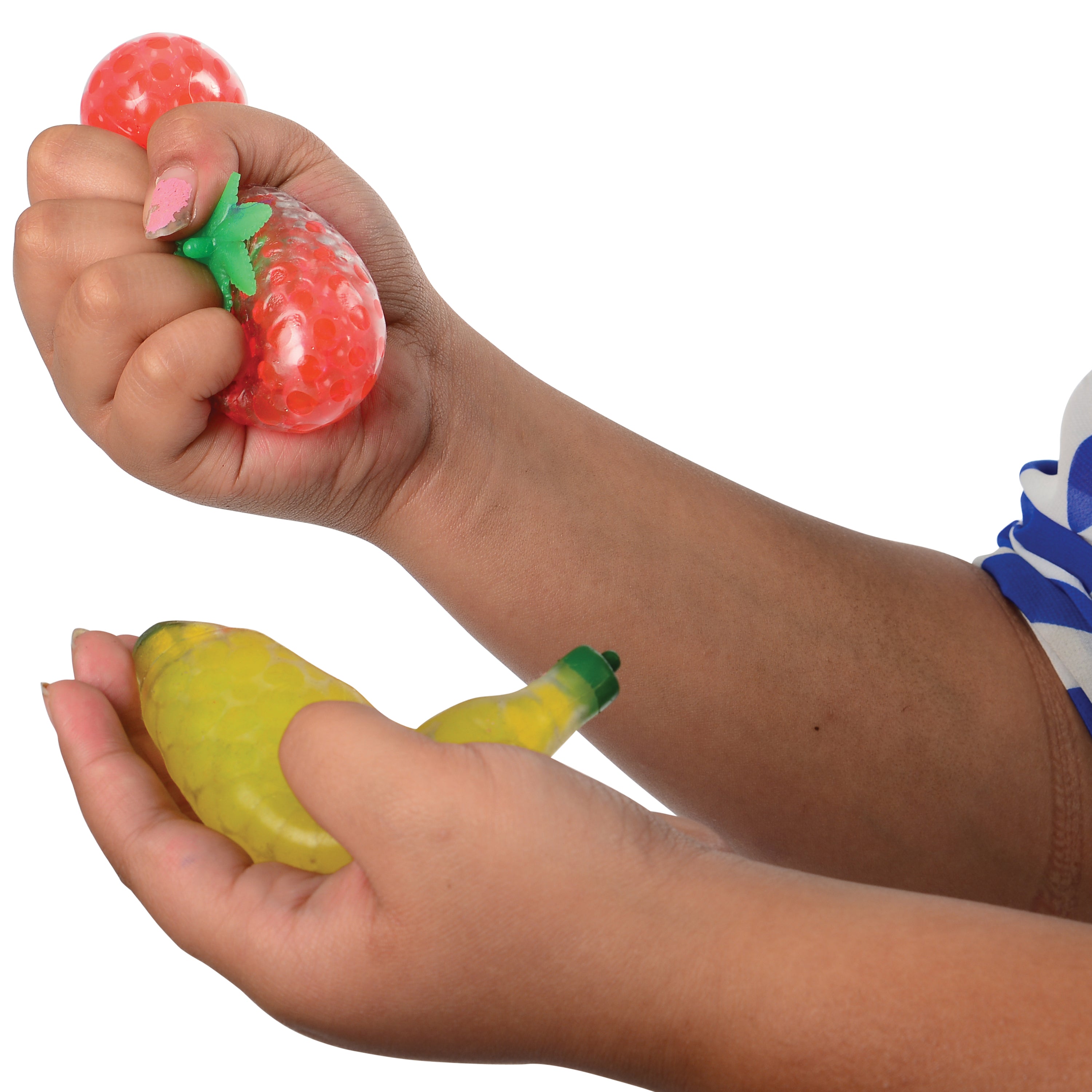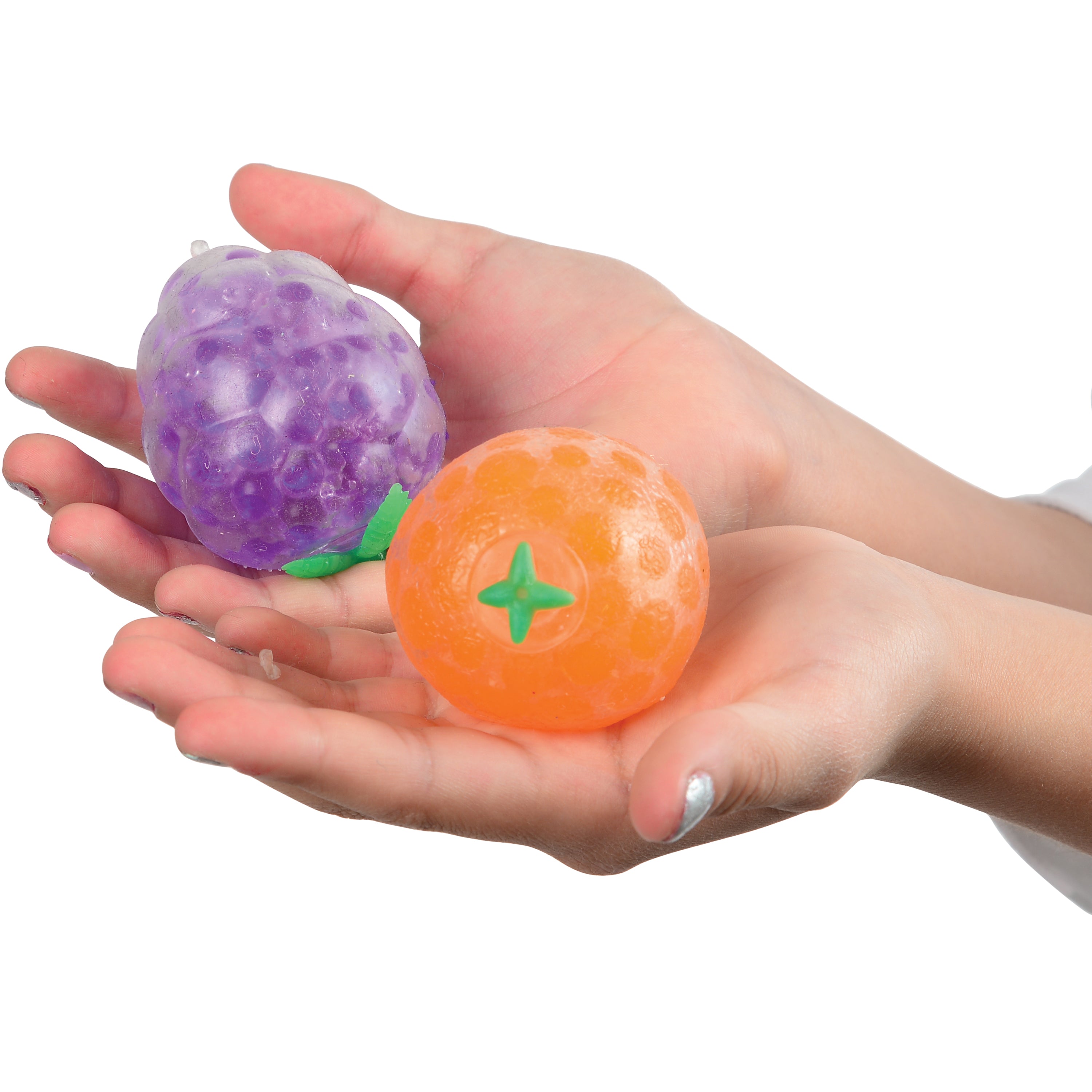 These splat ball fruit have water absorbing beads inside for a fun texture experience.