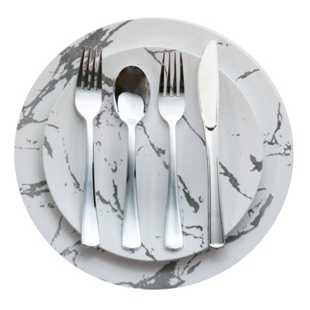 Each 40 Pack Includes: 20 X 10.25" Dinner Plates And 20 X 8" Salad/Buffet Plates Quality: Made Of Heavyweight Food Grade Hard Plastic, Our Premium Plastic Party Plates Are The Perfect Way To Enhance Your Event! Trendables: Trendy Disposables For The Chic Consumer. Unlike The Typical Sets Of Uniform Plastic Plates, The Tredables Are Made Up Of 3 Unique Designs, That Coordinate Together To Make Your Party A One Of A Kind Event. Disposable: Disposable Works! When The Party Is Over, Cleanup Is Easy - Just Roll Up The Disposable Tablecloth And Dispose Of It.