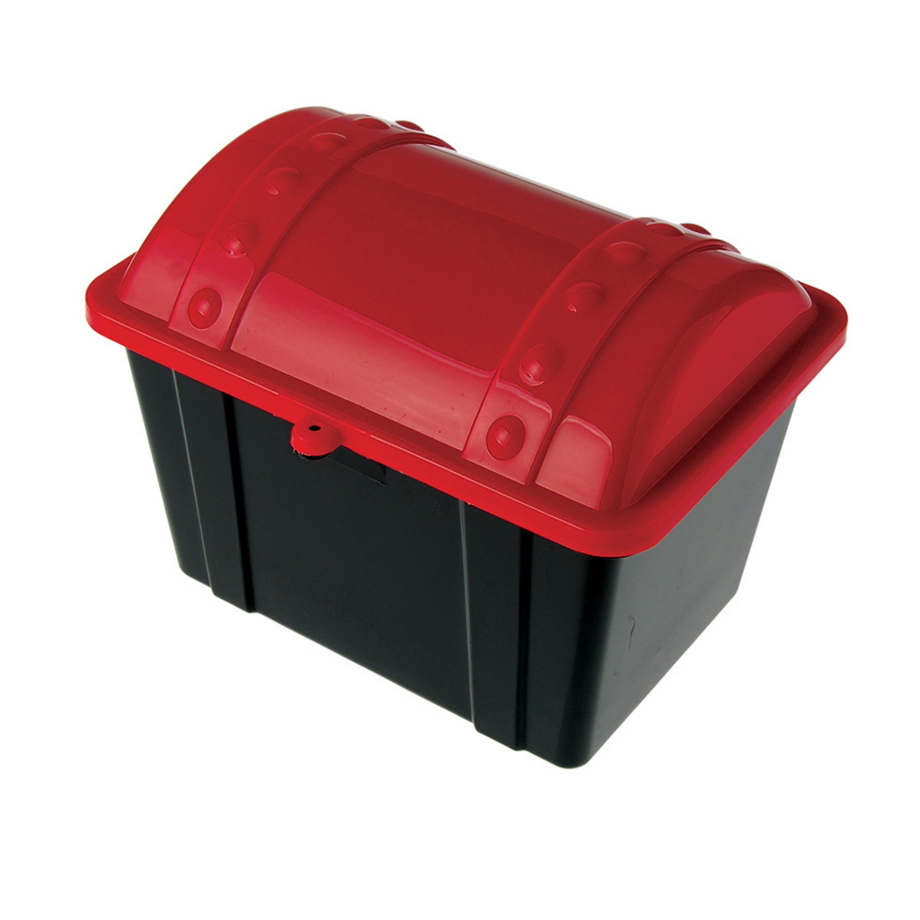 Fill this red and black treasure chest with loot. Great for pirate parties, classroom rewards buckets, or making a party game out of. Must have for kid's party supplies.