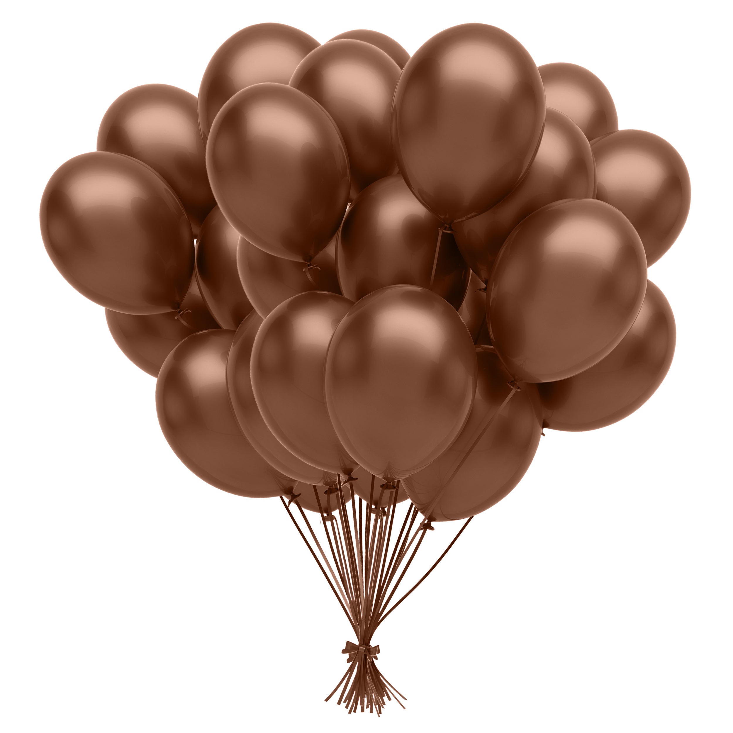 72-count pack of 12-inch brown latex balloons, perfect for woodland themes, fall parties & rustic events. Wholesale pricing available. Just $0.08 per balloon!