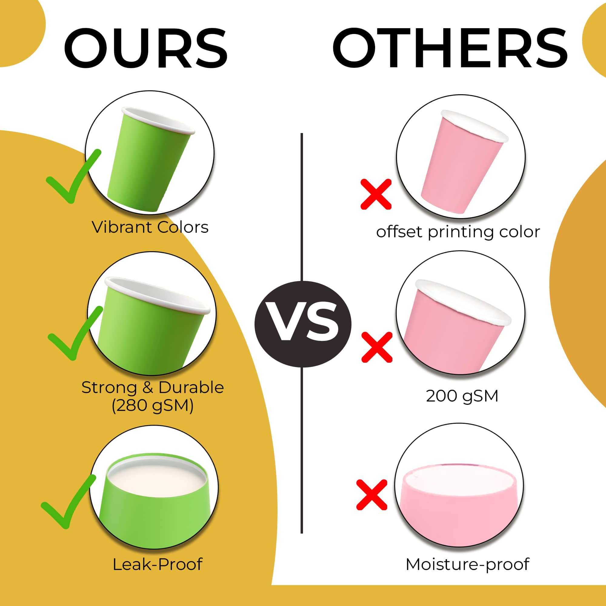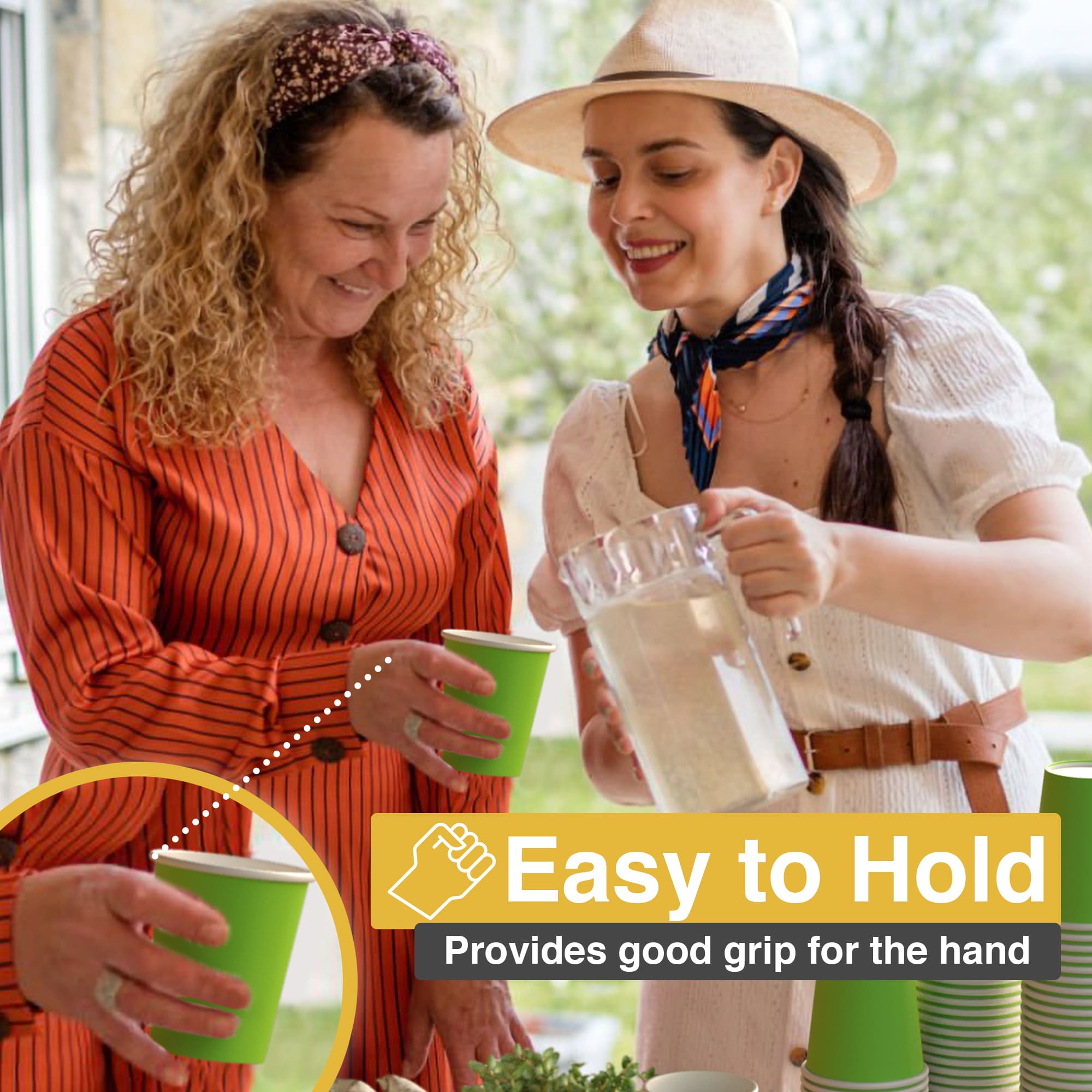 These 12 oz. lime green paper cups offer a vibrant and eco-friendly solution for serving beverages at any event. Designed for durability and convenience, each pack contains 20 cups, perfect for parties, gatherings, or everyday use. Their bright lime green color adds a fresh, lively touch to your table setting while being disposable for easy cleanup. Ideal for both cold and warm drinks, these cups combine practicality with a pop of color to enhance your serving experience.