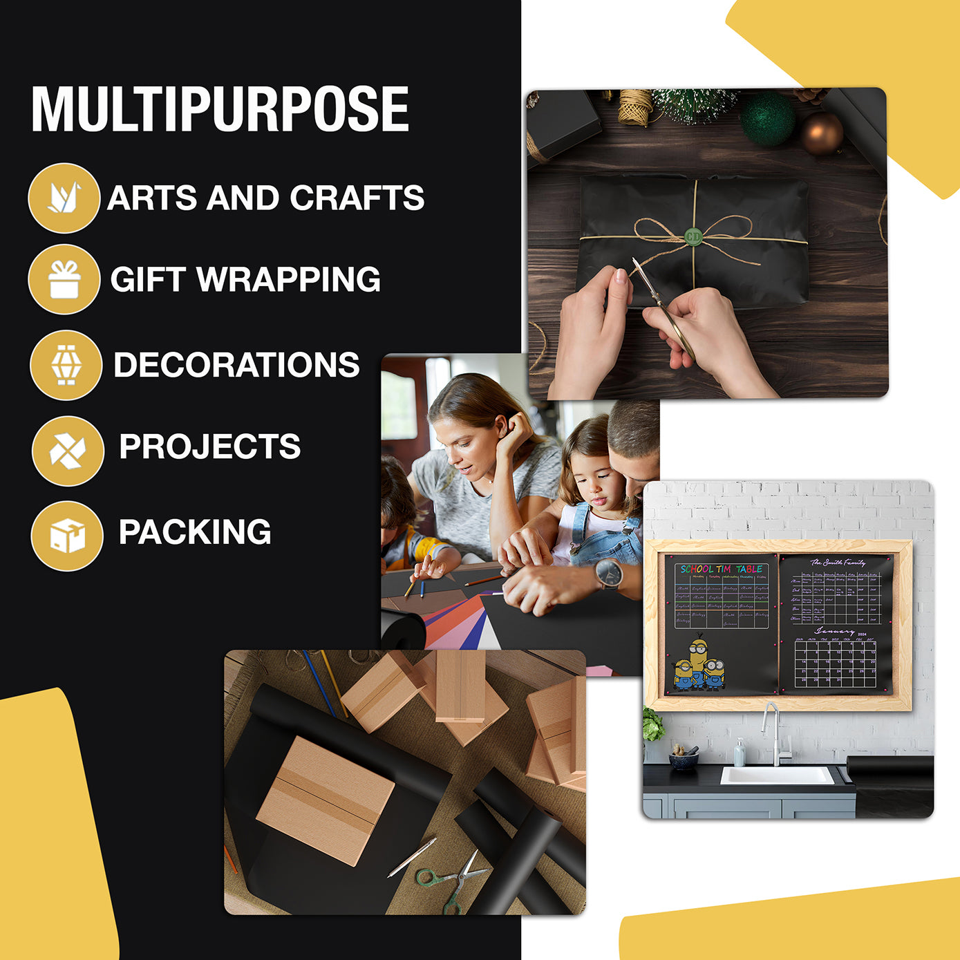 Our 17.75" x 110' black kraft paper roll is perfect for a wide range of uses, from wrapping gifts and crafts to decorating and protecting surfaces. Its durable construction ensures it can withstand various applications without tearing or puncturing. Its black color adds a touch of elegance and sophistication to any project. Whether you're wrapping gifts for a special occasion or creating custom art pieces, this kraft paper roll provides a stylish and professional finish.