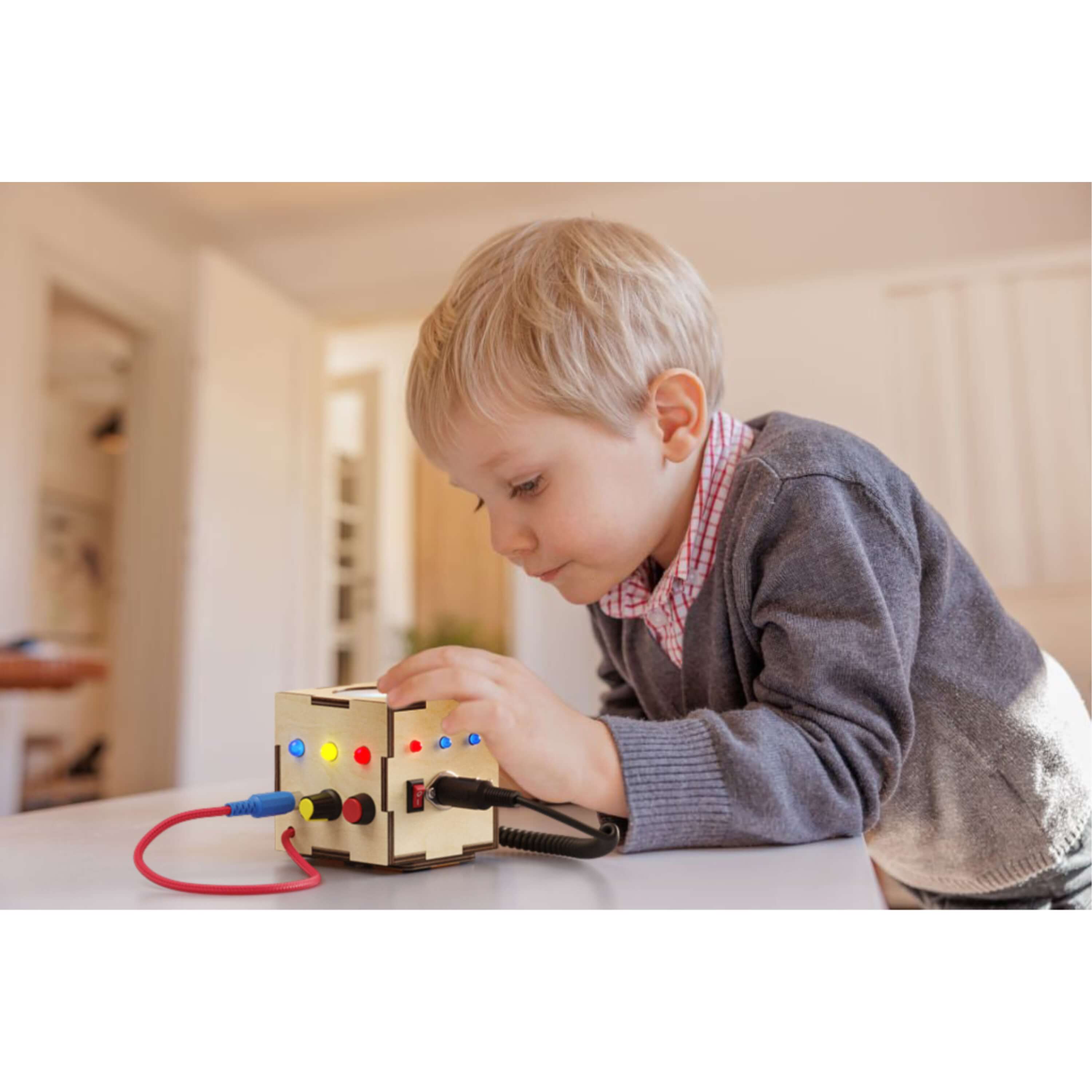 Interactive 3x3 sensory busy cube with lights & buttons for STEM learning & motor skill development. Perfect educational toy for early childhood development.