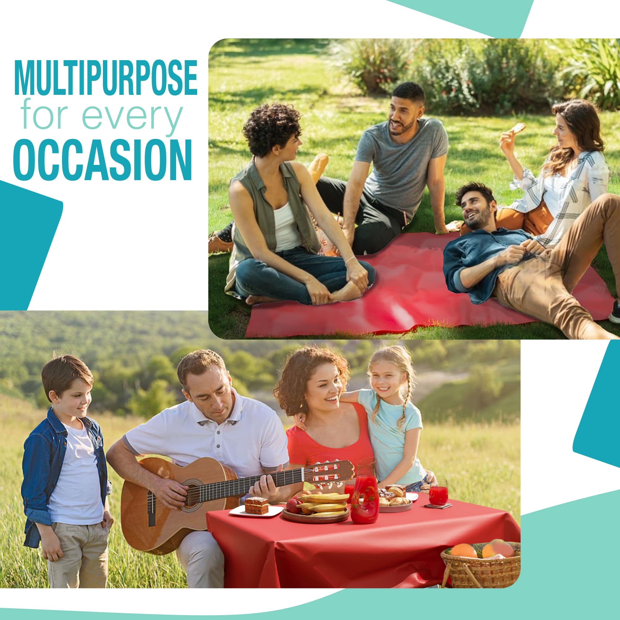 Rather than the long rolls of plastic table cloth, I've started to lean toward this design. It's compactness makes it easier to store and bring along anywhere. The built-in cutter, while not the most snug and sturdy in the box, makes it much more convenient. We used this on 10 picnic tables and still have a lot left. This was a good deal, definitely something I purchase again.