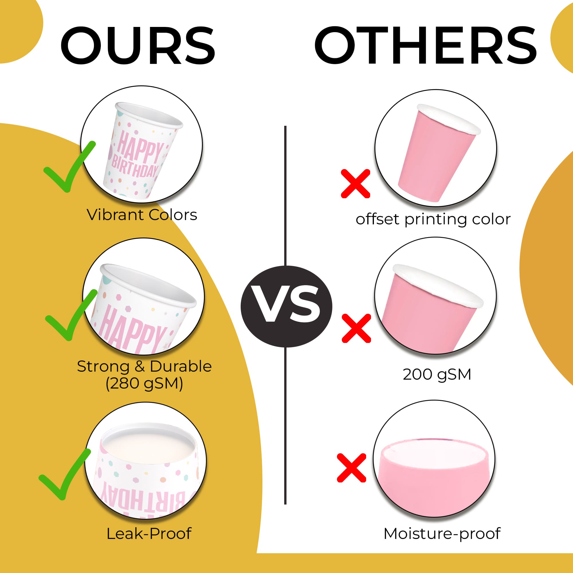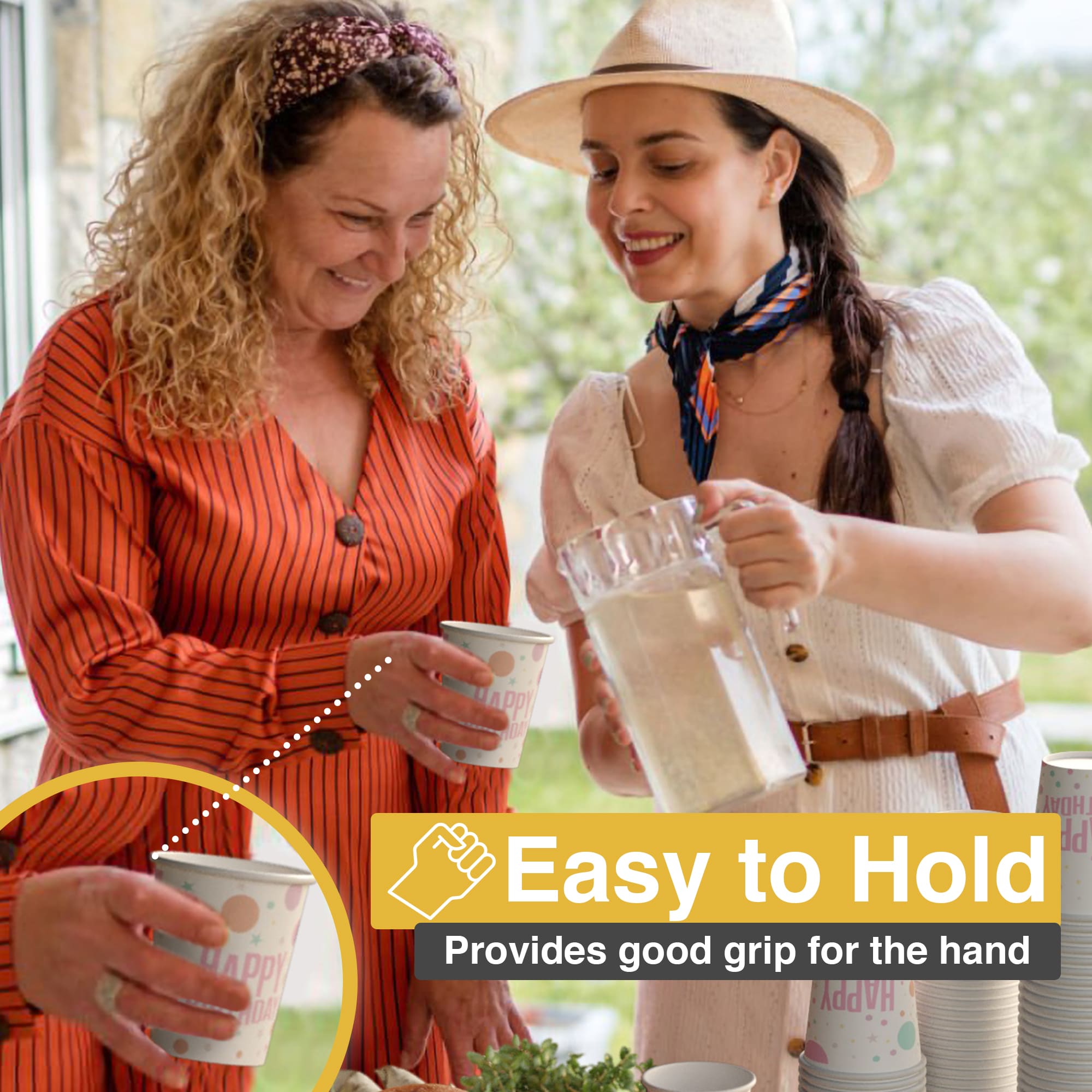 Indulge in a touch of sophistication with our 9 oz. Pink Birthday Print Paper Cups, boasting a luxurious design fit for any celebration. With 50 cups per pack, you'll have plenty to share with your exclusive guests. Elevate your party with these elegant yet practical cups.