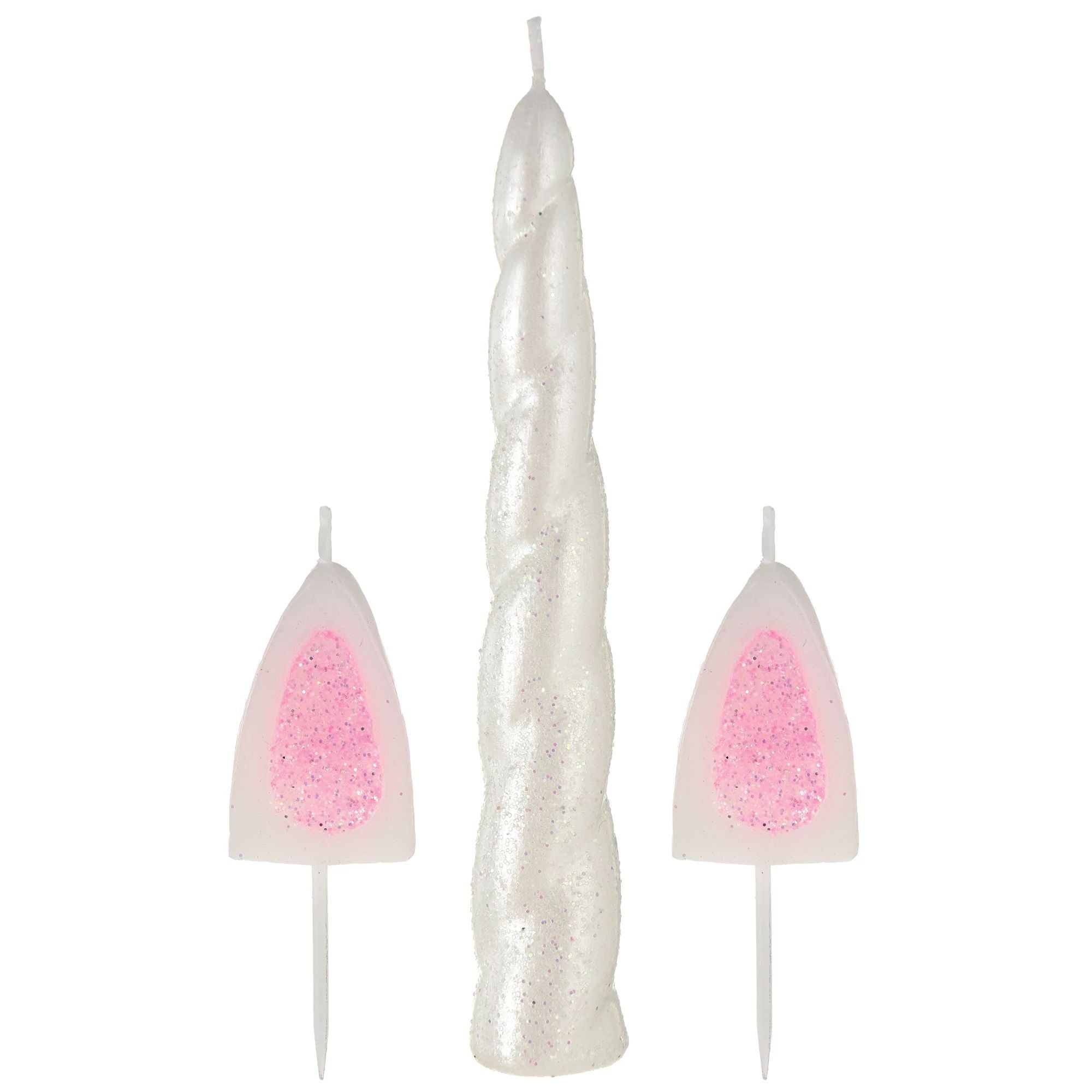 Add a touch of magic to your child's birthday celebration with the Enchanted Unicorn Candle Set. Featuring a shimmering unicorn horn and two matching ears, this molded candle set creates a whimsical centerpiece for any cake. Perfect for everyday fun or a special occasion, these candles bring fantasy to life at any juvenile birthday party.