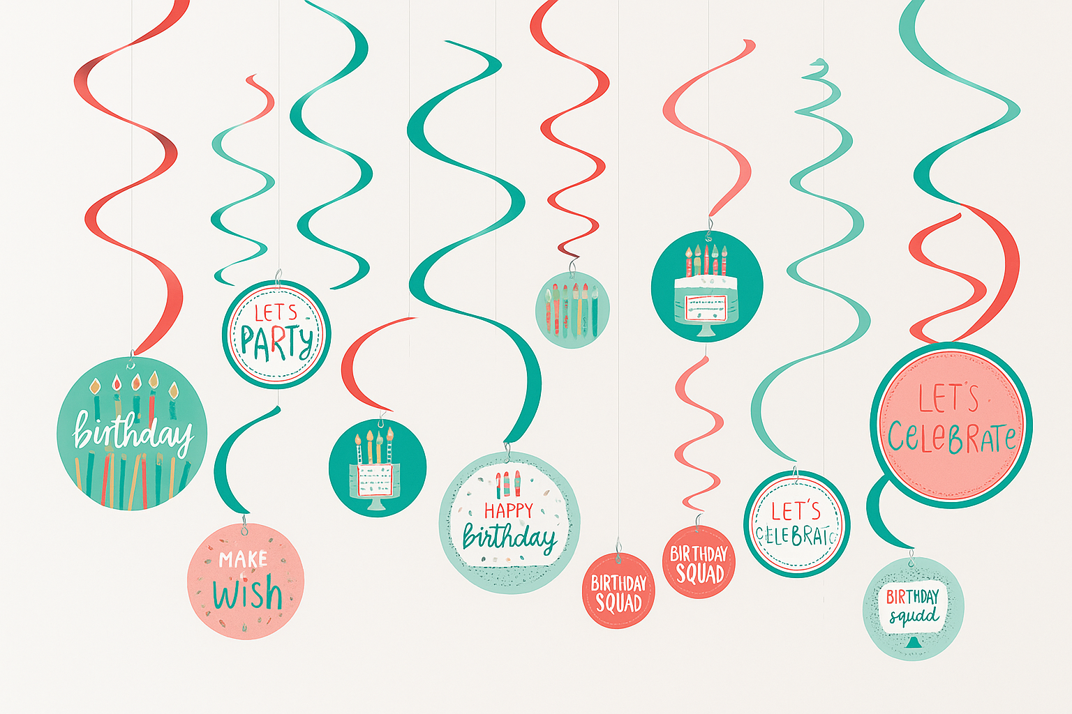 Happy Cake Day Spiral Hanging Decorations - Colorful Birthday Swirls, 12-Pack