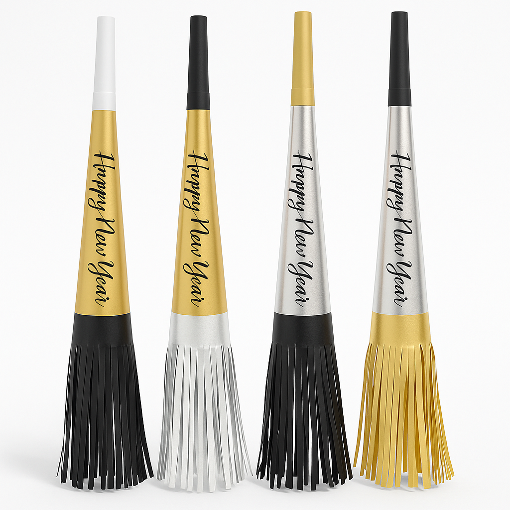 The New Years party items come in many colors, including the classic gold and black and many other color options as well.