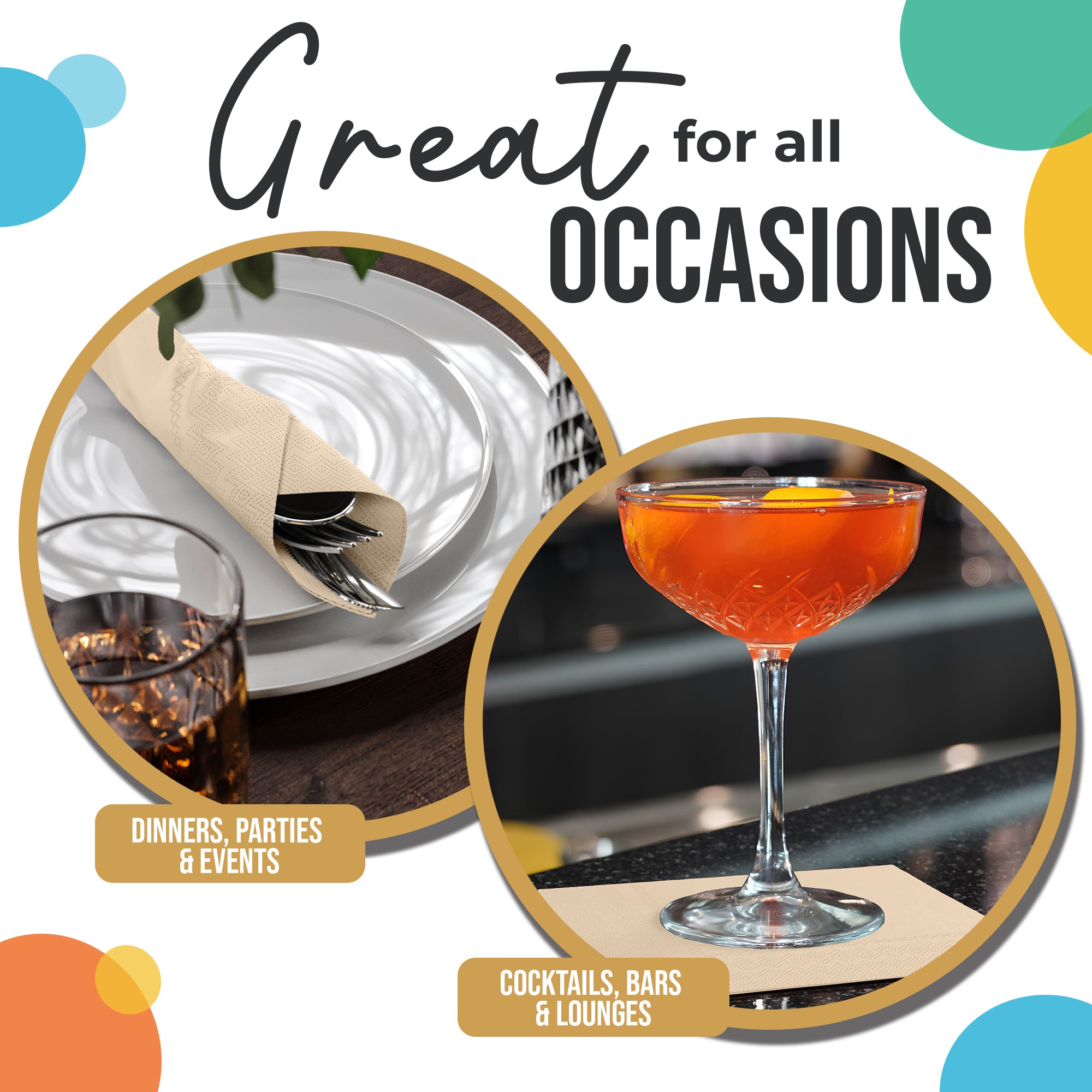 Elevate your gatherings with these premium ivory beverage napkins, the perfect finishing touch for any occasion. Each pack contains 100 napkins, offering exceptional value and convenience for entertaining at home or hosting larger events. The classic ivory hue complements any décor while maintaining an air of sophistication. Ideal for cocktail parties, weddings, brunches, and casual get-togethers, these napkins combine practicality with understated elegance. Stock up and ensure you're always prepared to impress your guests with quality details that matter.