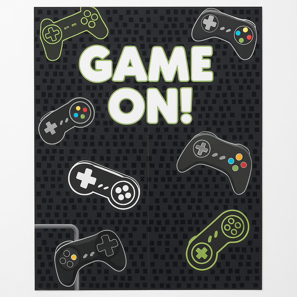 Transform any space into a gamer's paradise with the "Game On" Video Game Controller Scene Setter Kit. Perfect for juvenile birthday celebrations, this backdrop features a vibrant design with retro video game controllers and the bold “Game On!” message. Ideal for themed parties, it’s easy to set up and sure to level up your party photos. Make every day a gaming adventure with this versatile decoration!