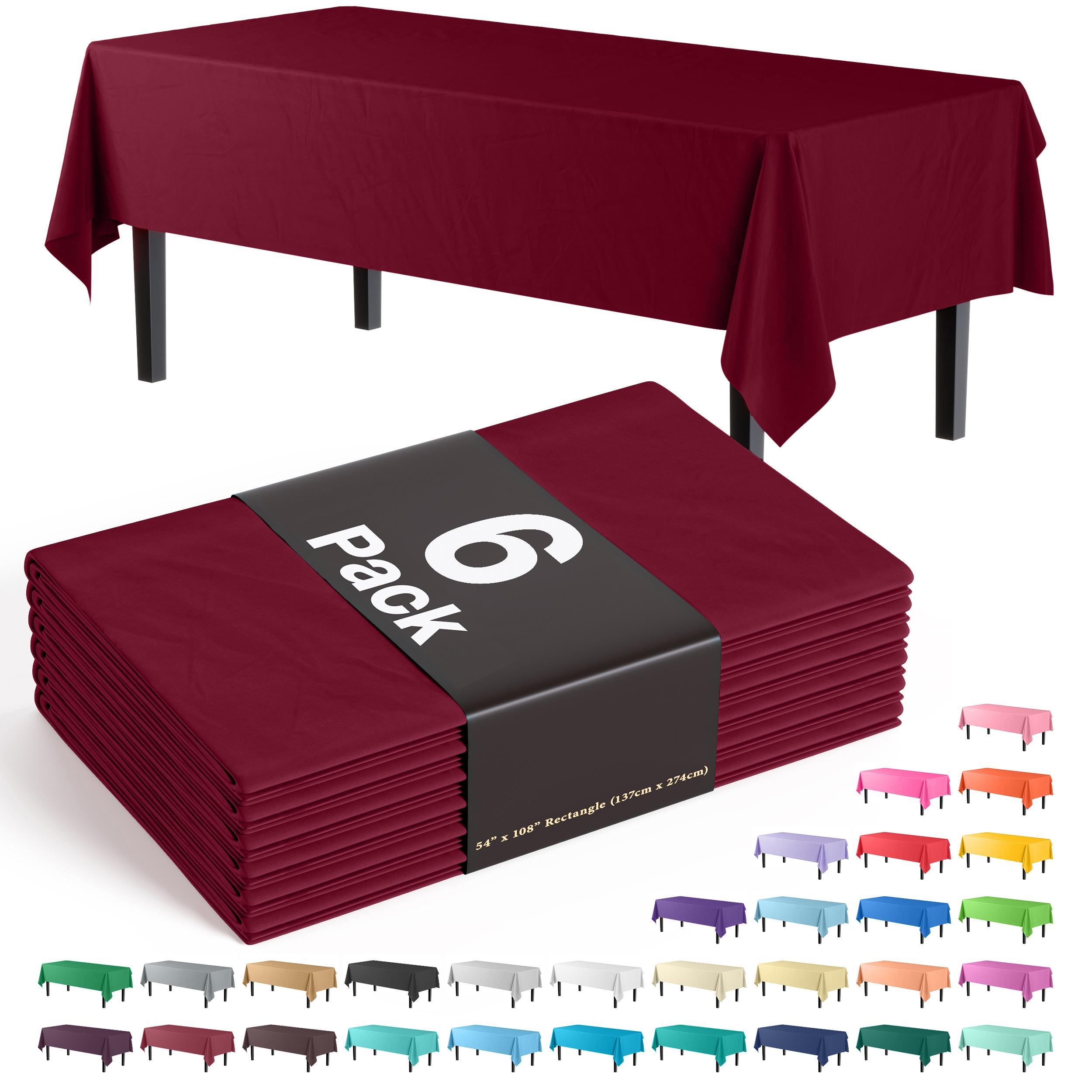 Premium Burgundy Plastic Table Covers | 6 Pack - 54 In. x 108 In.
