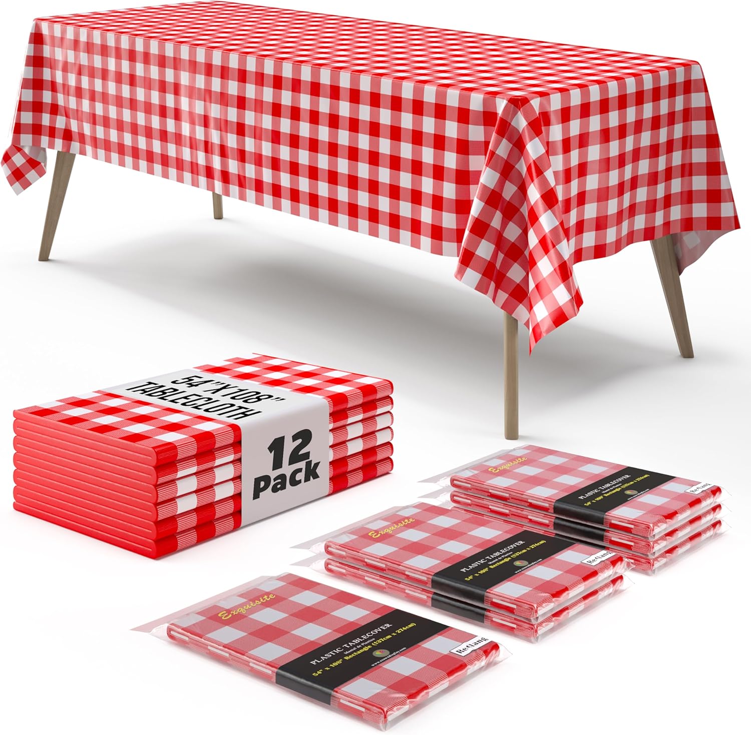 Red Gingham Plastic Table Covers | 12 Pack - 54 In. x 108 In.