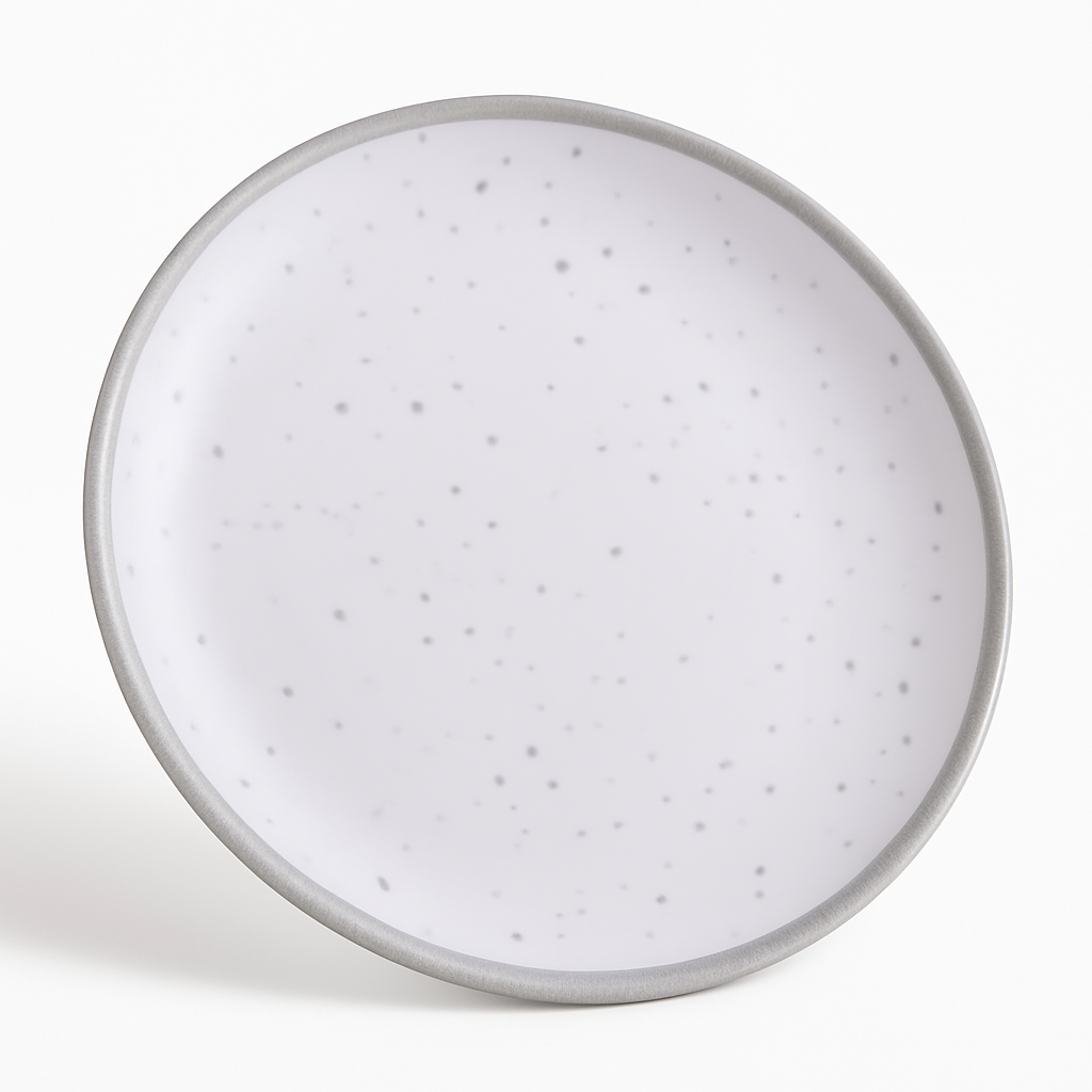 Elevate your dining experience with our 8.35" Melamine Lunch Plate in elegant silver. Perfect for everyday use or special occasions, each plate features a subtle silver trim that adds a touch of sophistication to your table setting. Made from durable melamine, these plates are sturdy enough to hold generous portions of your favorite dishes. Ideal for premium entertaining, they are easy to clean and reusable, making them a wonderful addition to any tableware collection. Note: Not microwave safe.