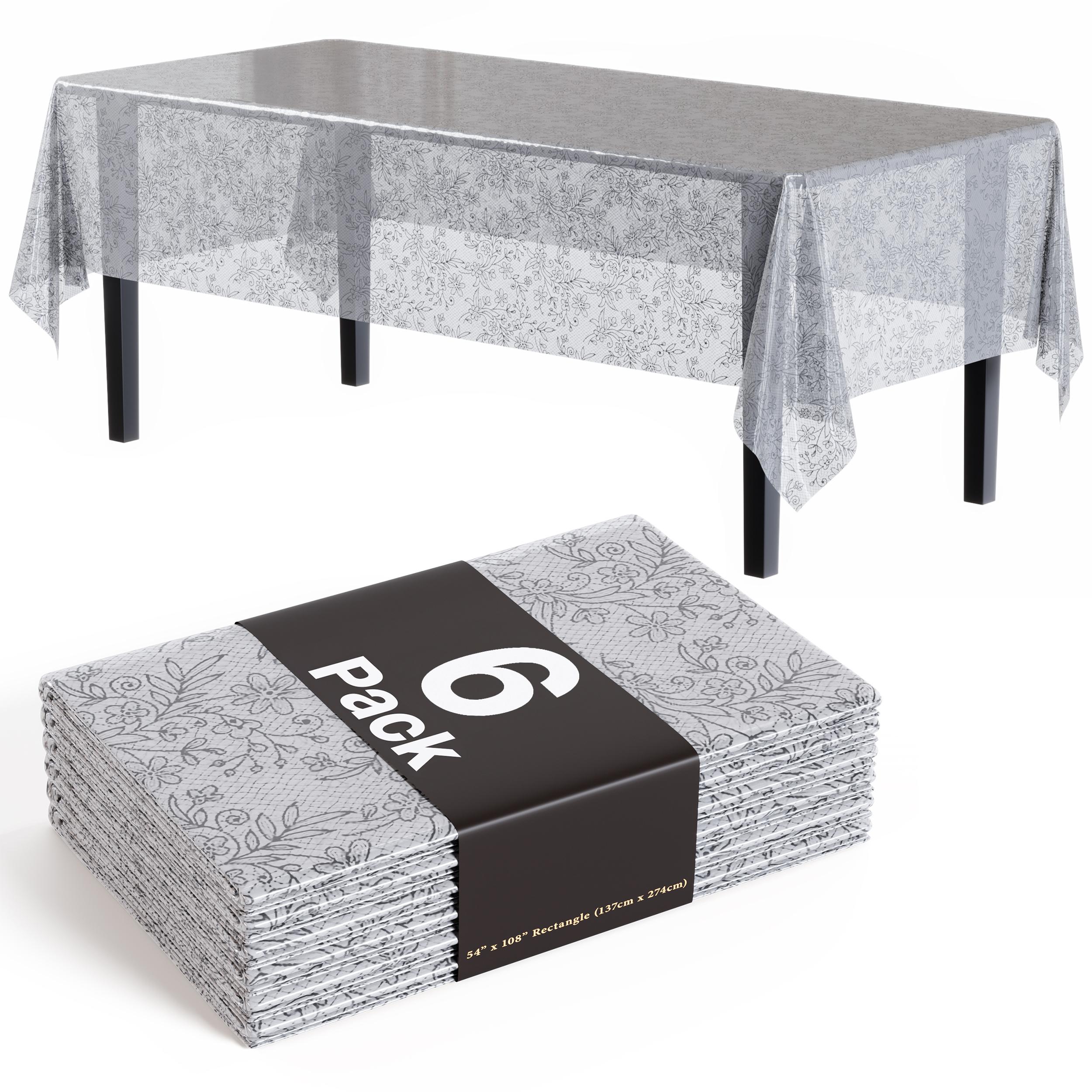 Silver Floral Plastic Table Covers | 6 Pack - 54 In. x 108 In.