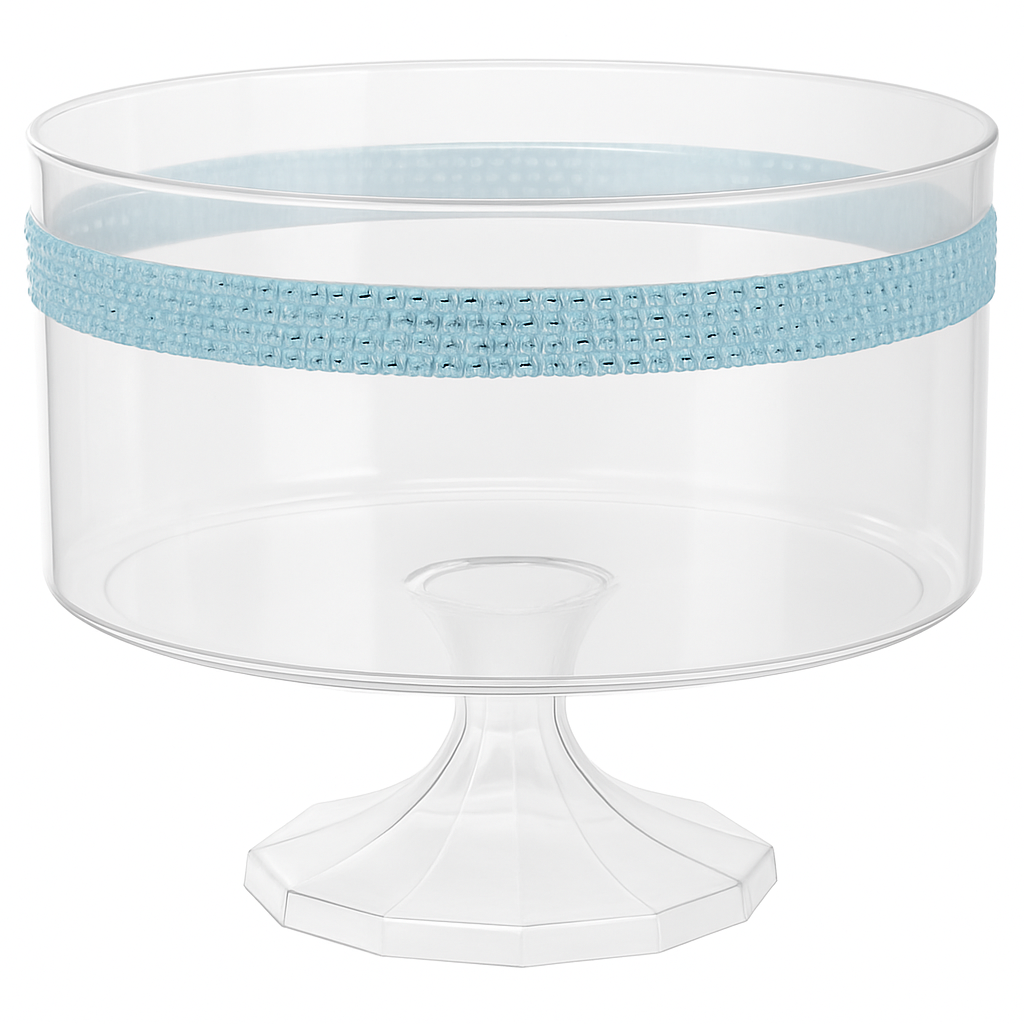 Add a touch of elegance to your candy buffet with this Caribbean Blue Rhinestone Trifle Bowl. Perfect for any occasion, this clear plastic container features a striking blue rhinestone accent along the rim. With an 80 oz capacity, it’s ideal for showcasing sweets like lollipops, gumballs, and jelly beans. The faceted stand adds stability and style, making it a stunning centerpiece for birthdays, weddings, or showers. Easy to use and reusable, this trifle bowl ensures your treats are displayed with sparkling flair.