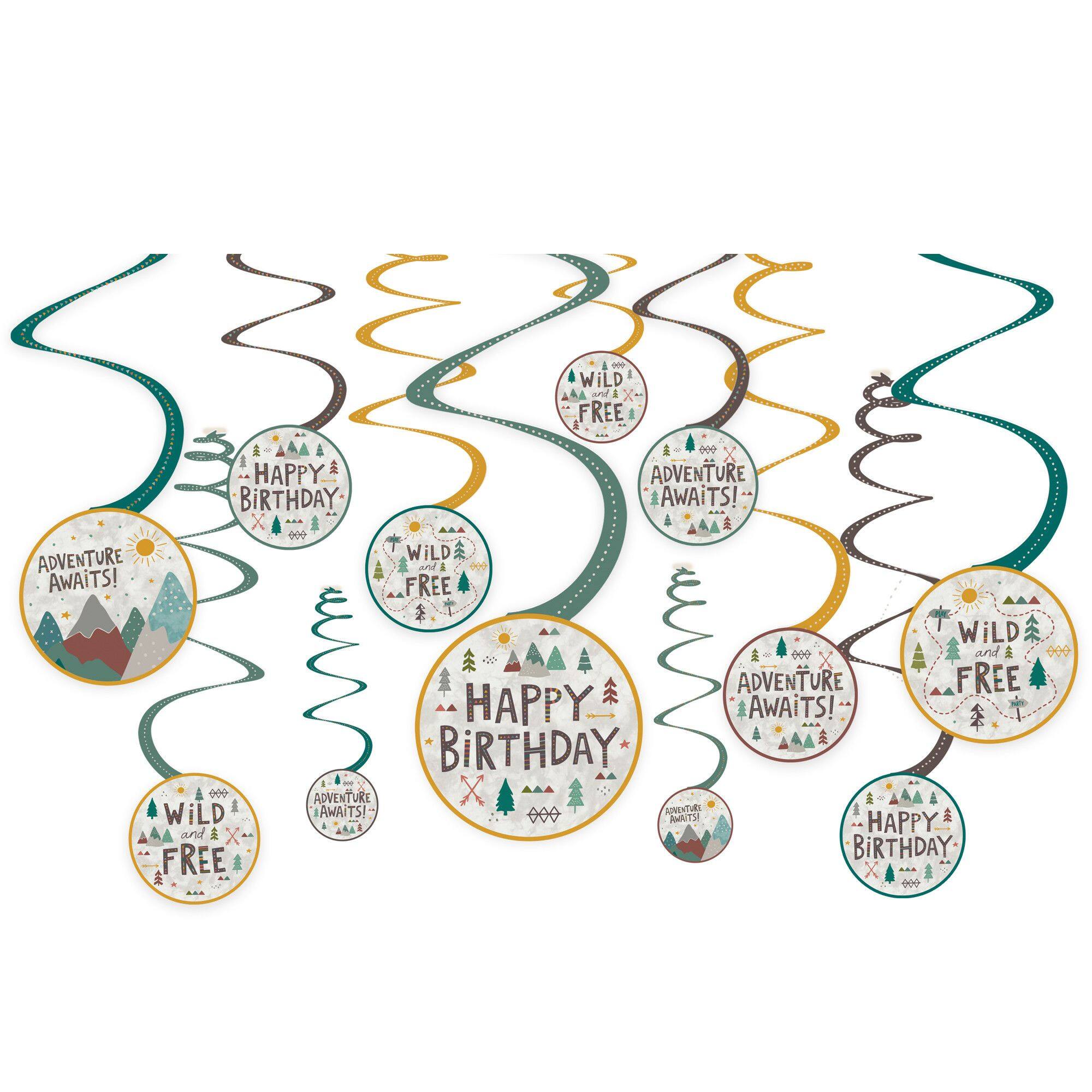 Wilderness Adventure Birthday Swirl Decorations - 12 Pack