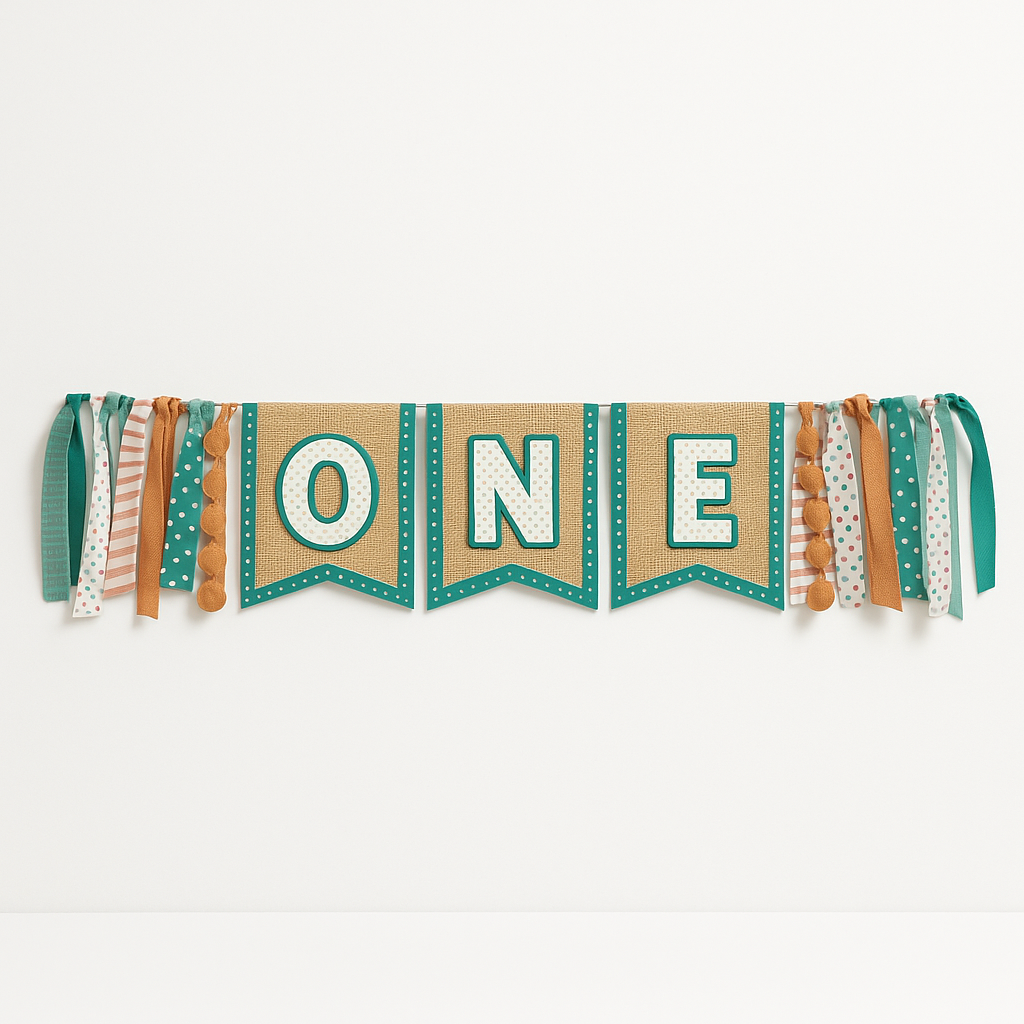 Make your little one's first birthday unforgettable with the Wilderness High Chair Decoration Set. This charming ensemble features patterned ribbons, playful pom-poms, and three burlap pennants spelling "One" arranged on a versatile white ribbon. Sized at 38" x 9", it wraps perfectly around any high chair tray, offering a delightful view from every angle. With included foam tape for secure attachment, this decoration brings a touch of the wild to picture-perfect celebration moments!
